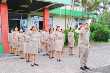 วันจันทร์ที่ 29 กันยายน 2568 นายศิวกร ศรีภักดี สหกรณ์จังหวัดนครศรีธรรมราช พร้อมด้วยบุคลากรสำนักงานสหกรณ์จังหวัดนครศรีธรรมราช ร่วมกันเคารพธงชาติไทยและร้องเพลงชาติไทย เนื่องในวันพระราชทานธงชาติไทย 28 กันยายน ประจำปี 2568 เพื่อเป็นการสร้างความภาคภูมิใจของคนในชาติ และเป็นการน้อมรำลึกในพระมหากรุณาธิคุณ ของพระบาทสมเด็จพระมงกุฎเกล้าเจ้าอยู่หัว ที่ทรงพระราชทาน “ธงไตรรงค์” เป็นธงชาติไทย เป็นความภาคภูมิใจในเอกราช และความเสียสละของบรรพบุรุษไทย ณ บริเวณหน้าเสาธง สำนักงานสหกรณ์จังหวัดนครศรีธรรมราชตำบลท่าเรือ อำเภอเมืองนครศรีธรรมราช จังหวัดนครศรีธรรมราช