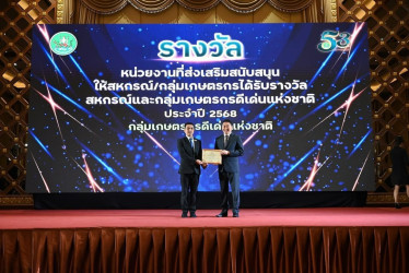 1. รางวัลหน่วยงานที่ส่งเสริมสนับสนุนให้ กลุ่มเกษตรกรทำสวนตลิ่งชัน ได้รับรางวัลสถาบันกลุ่มเกษตรกรดีเด่นแห่งชาติ ประเภทกลุ่มเกษตรกรทำสวน ประจำปี พ.ศ. 2568