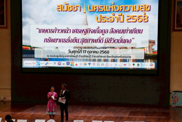 วันที่ 17 ตุลาคม 2568 นายอามินทร์ มะยูโซ๊ะ รัฐมนตรีช่วยว่าการกระทรวงเกษตรและสหกรณ์ และคณะ ลงพื้นที่ตรวจราชการในจังหวัดนครศรีธรรมราช โดยลงพื้นที่จุดที่ 1 หมู่ที่ 2 ตำบลช้างซ้าย อำเภอพระพรหม จังหวัดนครศรีธรรมราช เพื่อมอบนโยบายและแนวทางการแก้ไขปัญหา บรรเทาความเดือดร้อนให้ราษฎร โดยมีผู้ว่าราชการจังหวัดนครศรีธรรมราช กล่าวต้อนรับและสภาองค์กรชุมชนตำบลช้างซ้าย อำเภอพระพรหม จังหวัดนครศรีธรรมราช นำเสนอข้อมูลในภาพรวมของพื้นที่และลงพื้นที่จุดที่ 2 ห้องประชุมใหญ่ อาคารไทยบุรี มหาวิทยาลัยวลัยลักษณ์ ตำบลไทยบุรี อำเภอท่าศาลา จังหวัดนครศรีธรรมราชเพื่อเปิดงานสมัชชานครแห่งความสุข มอบนโยบาย มอบเกียรติบัตรแก่กองทุนสวัสดิการชุมชนที่ผ่านการประเมินรับรองมาตรฐานกองทุน ประจำปี 2568 และรับข้อเสนอเชิงนโยบายระดับชาติ จาก 6 กลุ่มเครือข่าย ในการนี้ นายรุ่งโรจน์ สรวุฒิพิบูลย์ ผู้ตรวจราชการกรมส่งเสริมสหกรณ์ เขตตรวจราชการส่วนกลาง และเขตตรวจราชการที่ 5 พร้อมด้วย นายศิวกร ศรีภักดี สหกรณ์จังหวัดนครศรีธรรมราช ผู้อำนวยการกลุ่มงานวิชาการ ผู้อำนวยการกลุ่มส่งเสริมสหกรณ์และบุคลากรสำนักงานสหกรณ์จังหวัดนครศรีธรรมราช ร่วมลงพื้นที่