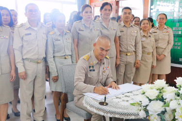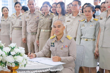 วันที่ 3 พฤศจิกายน 2568 นายศิวกร ศรีภักดี สหกรณ์จังหวัดนครศรีธรรมราช พร้อมด้วยบุคลากรสำนักงานสหกรณ์จังหวัดนครศรีธรรมราช ได้พร้อมใจร่วมพิธีน้อมถวายแสดงความอาลัย
