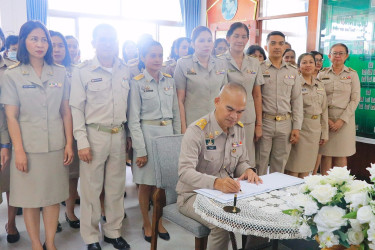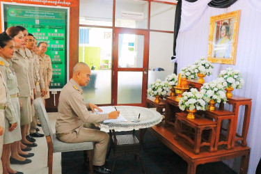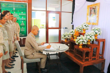 เบื้องหน้าพระฉายาลักษณ์ สมเด็จพระนางเจ้าสิริกิติ์ พระบรมราชินีนาถ พระบรมราชชนนีพันปีหลวง พร้อมทั้งร่วมลงนามถวายความอาลัย และยืนสงบนิ่งเพื่อน้อมรำลึกในพระมหากรุณาธิคุณ เป็นเวลา 1 นาที ณ อาคารสำนักงานสหกรณ์จังหวัดนครศรีธรรมราช 103 หมู่ที่ 11 ตำบลท่าเรือ อำเภอเมืองนครศรีธรรมราช จังหวัดนครศรีธรรมราช
