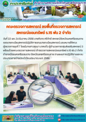 วันที่ 22 และ 24 ธันวาคม 2568 นายศิวกร ศรีภักดี สหกรณ์จังหวัดนครศรีธรรมราช รองนายทะเบียนสหกรณ์ปฏิบัติการแทนนายทะเบียนสหกรณ์ มอบหมายให้คณะผู้ตรวจการชุดที่ 7 โดยมีนางสาวสุมนา นาคแก้ว ผู้อำนวยการกลุ่มส่งเสริมสหกรณ์ 3 พร้อมด้วยคณะตรวจการสหกรณ์ เข้าตรวจการสหกรณ์ออมทรัพย์ ร.15 พัน 2 จำกัด อำเภอเมืองนครศรีธรรมราช จังหวัดนครศรีธรรมราช ตามแผนการปฏิบัติงานและงบประมาณรายจ่ายประจำปีงบประมาณ พ.ศ. 2569