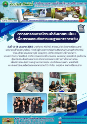 วันที่ 12-13 มกราคม 2568 นายศิวกร ศรีภักดี สหกรณ์จังหวัดนครศรีธรรมราช มอบหมายให้นางอรุณรัตน์ หวังดี ผู้อำนวยการกลุ่มส่งเสริมและพัฒนาธุรกิจสหกรณ์ พร้อมด้วย นางสาวจารุนีย์ สงอุปการ นักวิชาการสหกรณ์ชำนาญการ นางสาววรินทร โยธารักษ์ นักวิชาการสหกรณ์ชำนาญการ และนางสาวสุดารัตน์ สุขสำราญ เจ้าพนักงานส่งเสริมสหกรณ์ เข้าตรวจการสหกรณ์ตามคำสั่งนายทะเบียน เพื่อตรวจสอบกิจการและฐานะทางการเงิน ประจำปีงบประมาณ พ.ศ.2569 ณ สหกรณ์ออมทรัพย์กองพลทหารราบที่ 5 จำกัด อ.ทุ่งสง จ.นครศรีธรรมราช